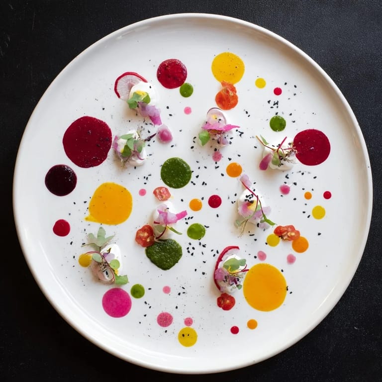 Pin it I'll never forget the first time I walked into a modern art gallery and saw a Pointillist painting up close—thousands of tiny dots creating this breathtaking whole. Years later, standing in my kitchen on a lazy Sunday, I thought: why not paint with food? That's when The Pointillism Dot Matrix was born, a dish that turned my plating into canvas work. It's become my favorite way to impress friends while having pure fun with color and flavor.