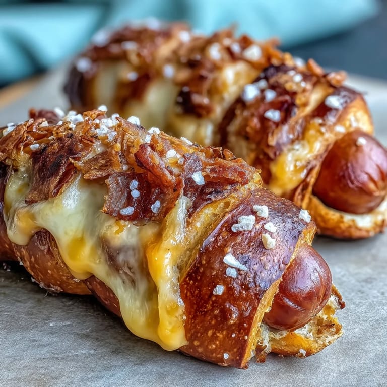 Pin it Soft Baked Cheesy Pretzel Dogs are the ultimate crowd-pleasing snack that brings the comfort of the ballpark right into your kitchen. Imagine a tender, chewy pretzel dough wrapped around a savory hot dog and a layer of gooey, melted cheddar cheese, all baked to golden perfection. This recipe strikes the perfect balance between salty and savory, with just a hint of sweetness in the dough to keep you coming back for more.