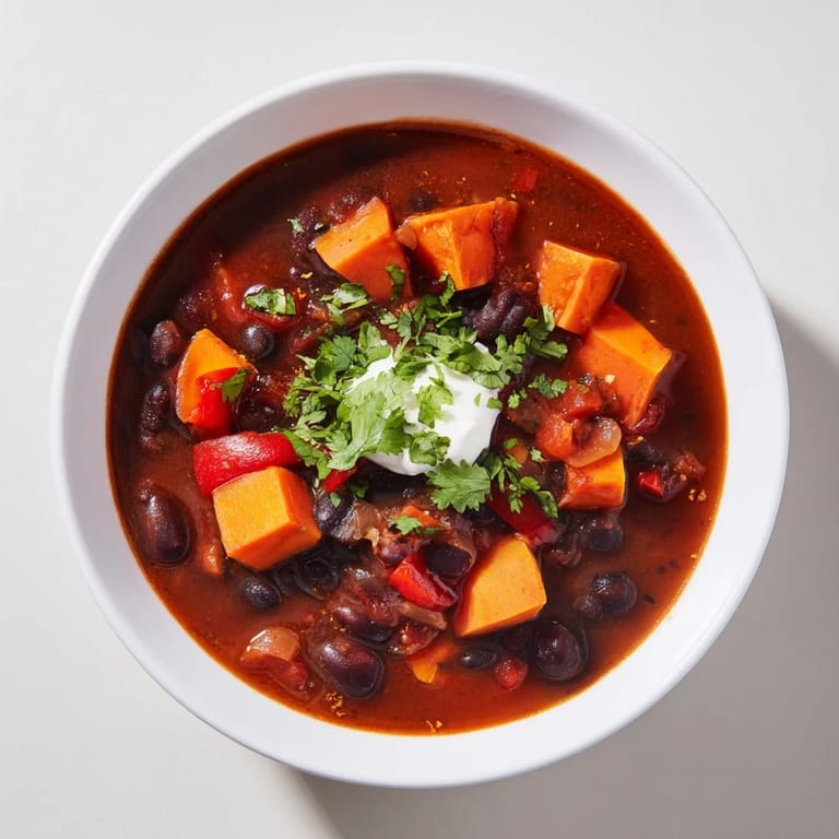 Pin it A hearty, vibrant vegetarian chili featuring sweet potatoes, black beans, and a blend of warming spices, making it perfect for a comforting weeknight meal.