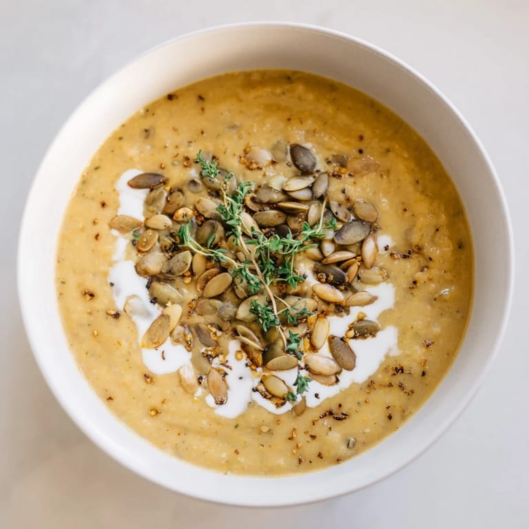 - Garnishes (optional): Roasted pumpkin seeds (pepitas) fresh thyme leaves a drizzle of cream