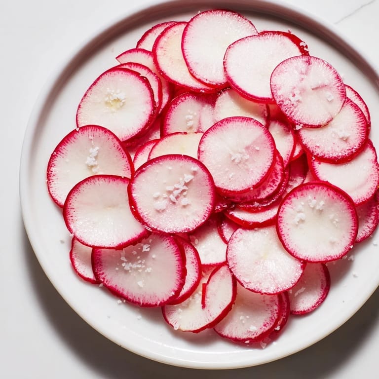 Pin it A crisp, refreshing snack featuring peppery radishes simply enhanced with flaky sea salt—perfect for a light appetizer or a healthy nibble.