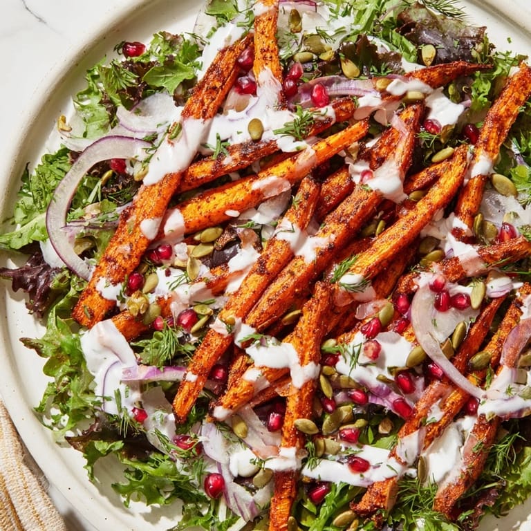 Pin it There's something magical about the moment when raw carrots transform in a hot oven—the kitchen fills with this sweet, almost caramel-like aroma that makes you forget you're eating something entirely plant-based. I discovered this salad on a quiet Tuesday evening when I had a bunch of carrots that needed using and absolutely no inspiration. What started as a simple roast turned into something I now make whenever I want to feel like I've actually gotten my life together in the kitchen.